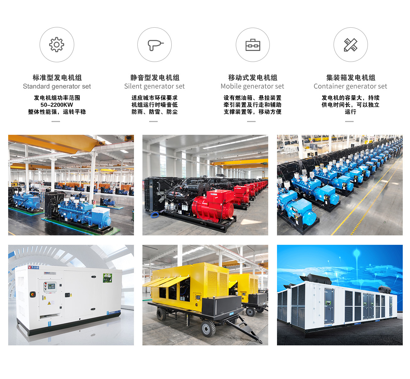 特殊型機組 船用發(fā)電機組 水泵機組 自動化發(fā)電機組 移動燈塔發(fā)電機 高壓輸出型發(fā)電機組